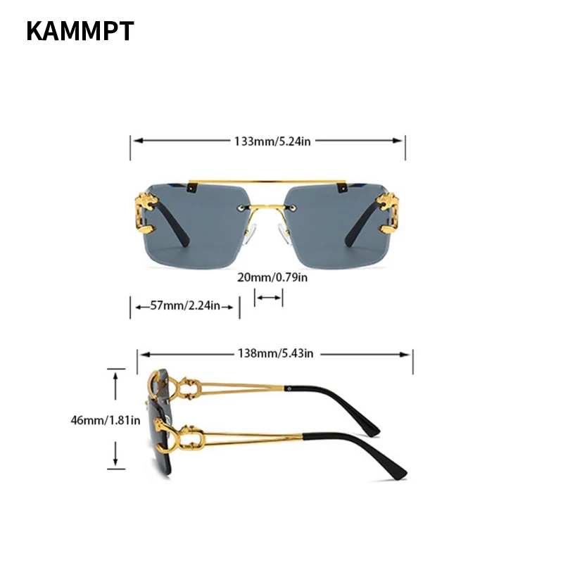 KAMMPT Vintage Rimless Sunglasses Men Women Fashion Oversized Square Shades Eyewear New Double Bridge Gradient UV400 Sun Glasses